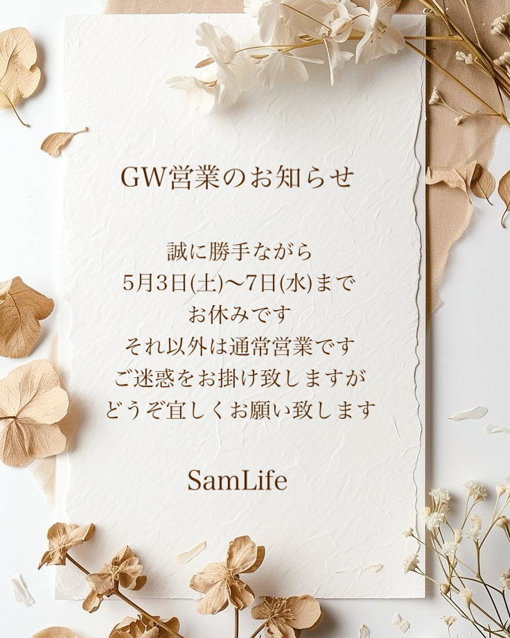 GWの営業日についてのお知らせです。